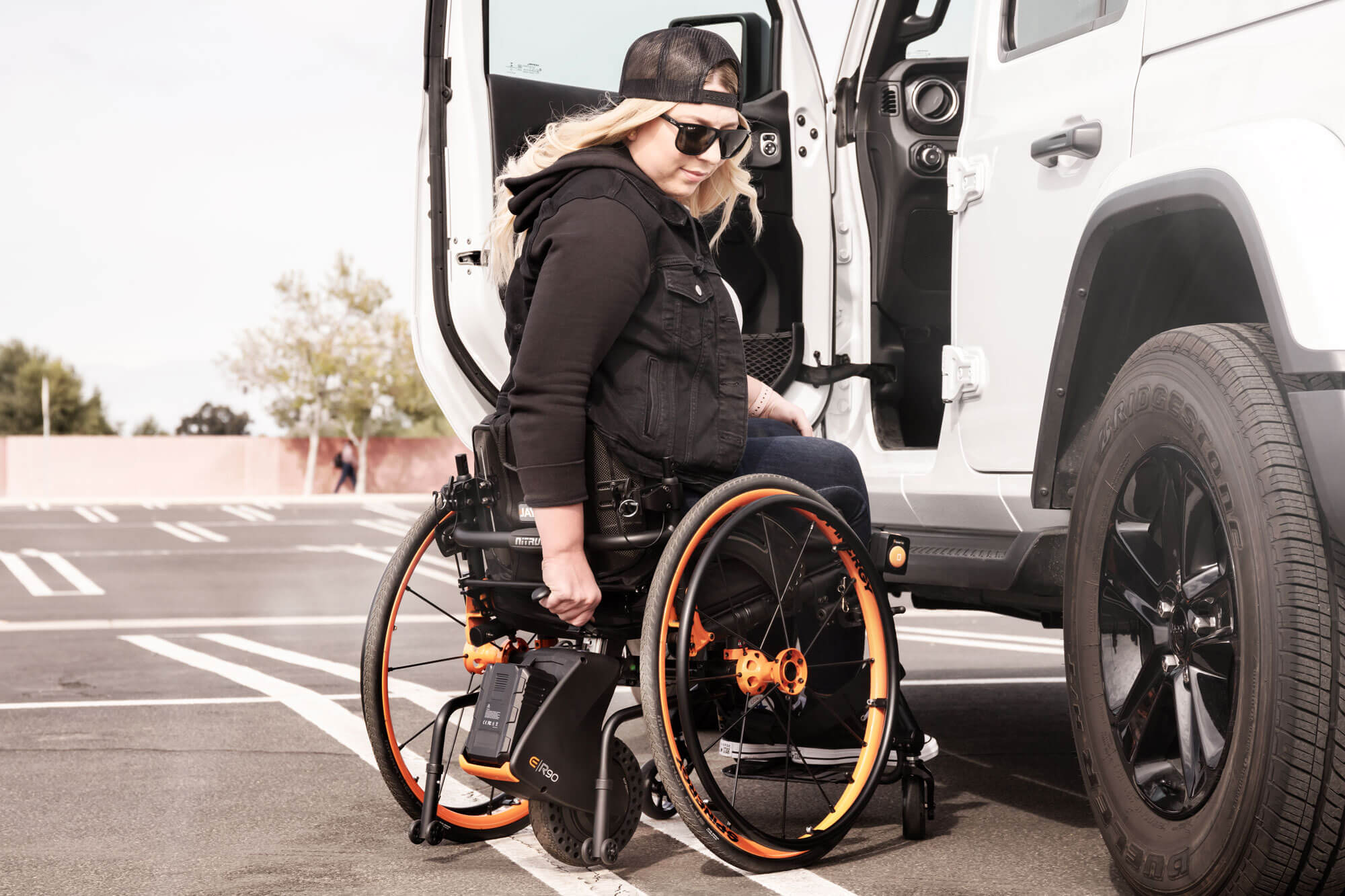 Empulse R90 è compatibile con la maggior parte delle carrozzine rigide e pieghevoli. I morsetti per l'aggancio non interferiscono con i componenti della carrozzina e non impediscono alla carrozzina di piegarsi.