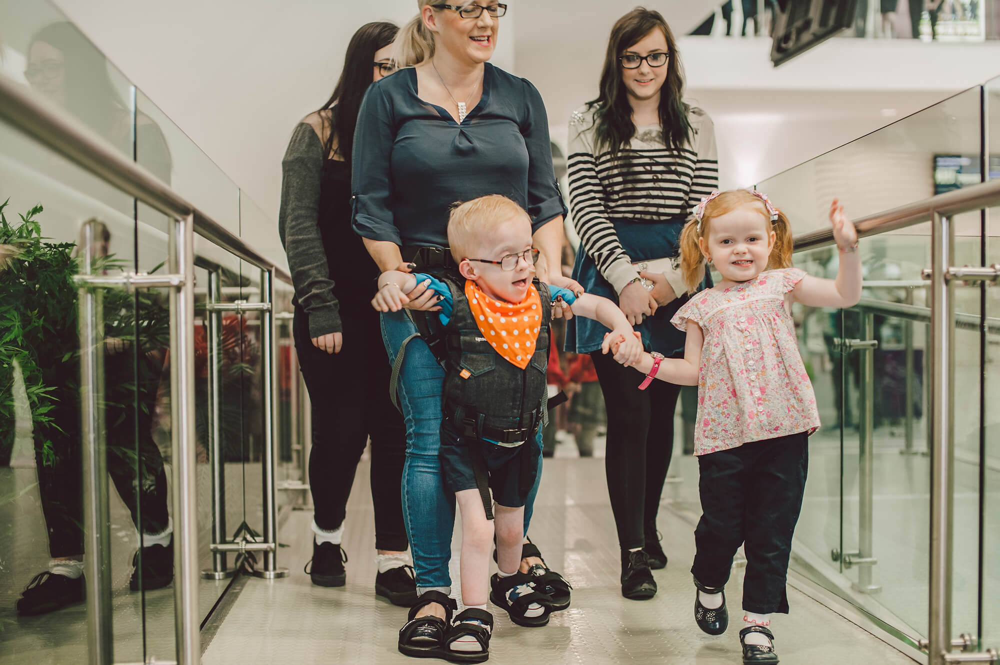 Ai bambini con limitazioni motorie Upsee spalanca le porte di un mondo inesplorato. Consente loro di apprendere come sostenere il proprio peso, di stare in piedi e di camminare per la prima volta con l’aiuto di un adulto.