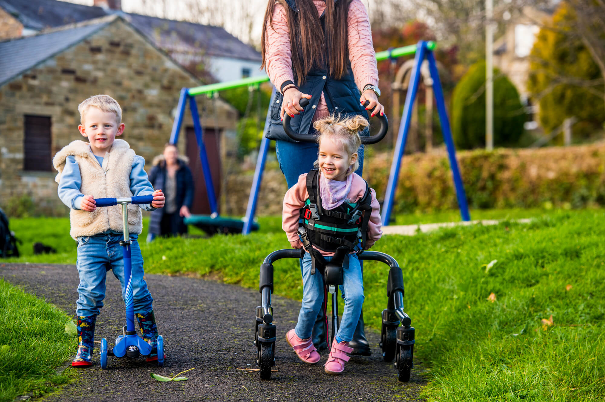 Il movimento ellittico offre un'esperienza sensomotoria simile a quella della deambulazione e può essere utilizzato inizialmente in modo passivo dai bambini che faticano a fare il primo passo, per promuovere modelli di memoria muscolare e incoraggiare una buona qualità del passo; e in seguito aiutando in modo attivo, i bambini che iniziano a camminare da soli. I bambini possono anche partire utilizzando le cavigliere e poi rimuoverle per effettuare un allenamento più intenso.